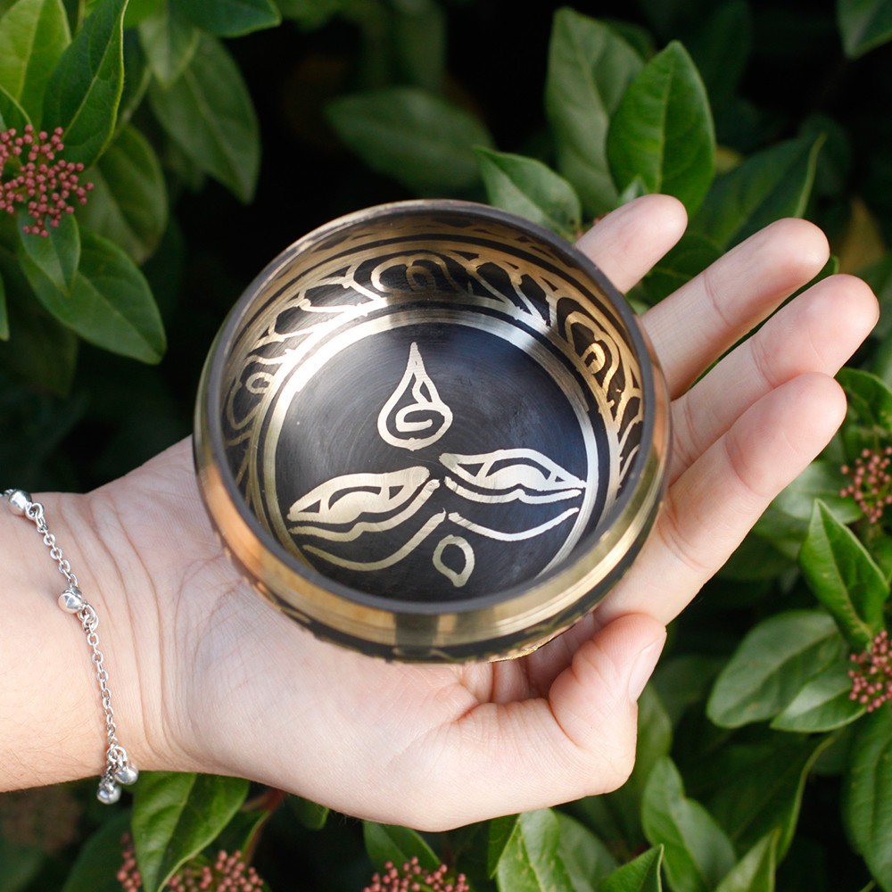Tybetańska misa uzdrawiająca z grawerem mantry.